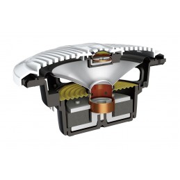 Material del altavoz de graves: Cono monocasco de polipropileno moldeado por inyección, reforzado con mica resistente al agua (IMPP™)